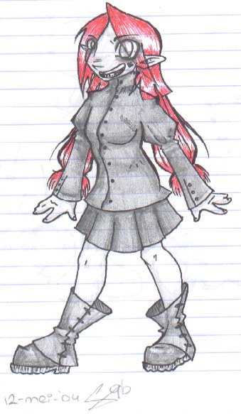 Well, what can i say... Just your basic girl... I tend to draw like this when I'm bored... Tralalala! Lookit the pink/red-ish hair! |